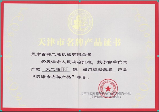 “天二通TET”牌閥門驅(qū)動(dòng)裝置產(chǎn)品連續(xù)兩屆榮獲天津市名牌產(chǎn)品稱號(hào),源于天津百利二通機(jī)械有限公司長(zhǎng)期重視產(chǎn)品質(zhì)量,充分發(fā)揮名牌優(yōu)勢(shì),增強(qiáng)核心競(jìng)爭(zhēng)力,堅(jiān)持帶頭推行名牌戰(zhàn)略的結(jié)果。