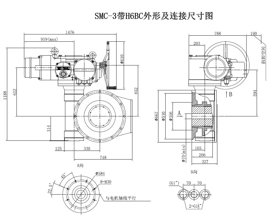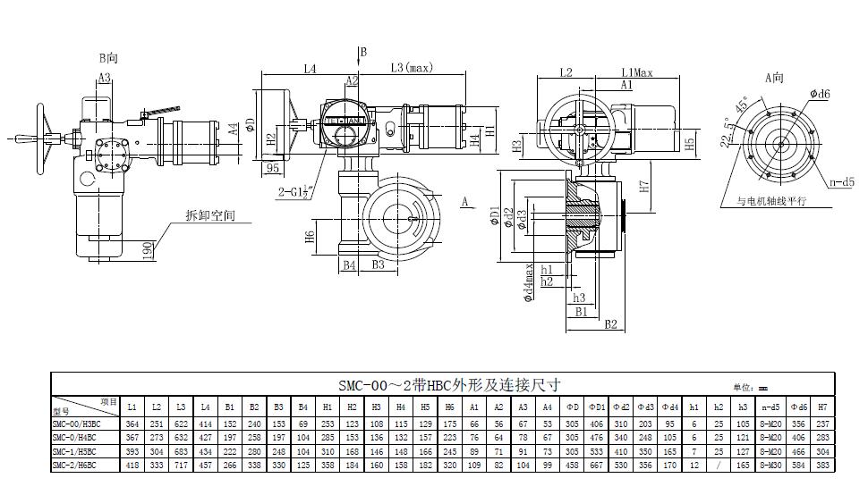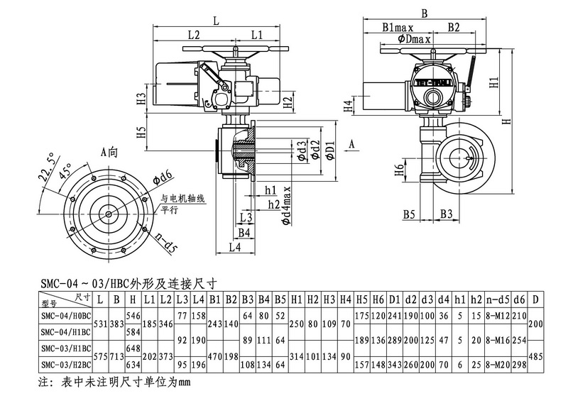 SMC/HBC系列電動(dòng)裝置是SMC系列多回轉(zhuǎn)電動(dòng)裝置與HBC蝸輪減速器的組合型式,它適合球閥、蝶閥等部分回轉(zhuǎn)閥門(mén)的驅(qū)動(dòng)控制。SMC/HBC電動(dòng)裝置具有以下特點(diǎn):結(jié)構(gòu)設(shè)計(jì)堅(jiān)固可靠,產(chǎn)品規(guī)格齊全,驅(qū)動(dòng)轉(zhuǎn)矩范圍大且動(dòng)力輸出穩(wěn)定, 具有良好的自鎖性能。 HBC輸出軸結(jié)構(gòu)獨(dú)特,裝有與閥桿連接的漸開(kāi)線花鍵接頭,產(chǎn)品的安裝調(diào)試方便。