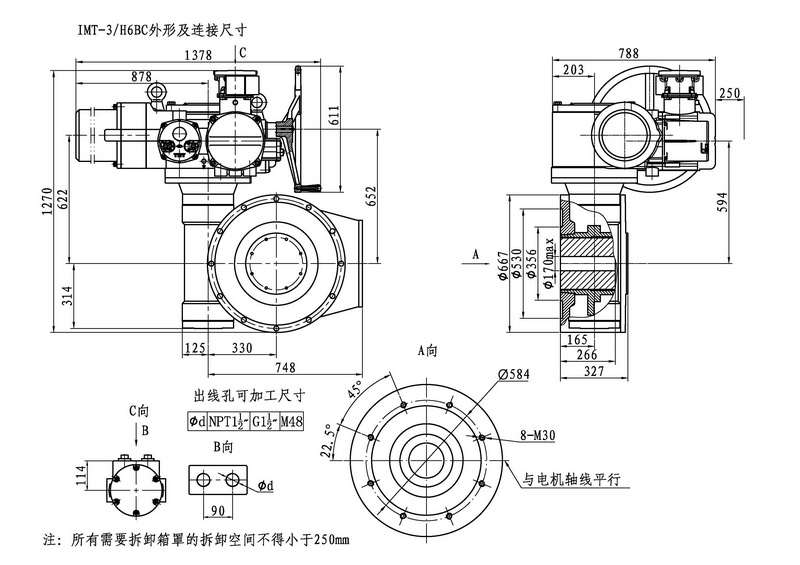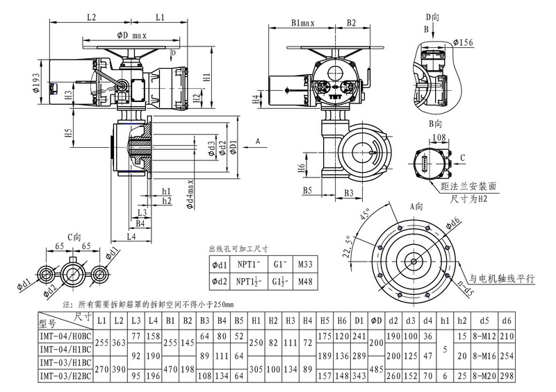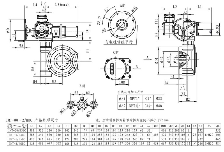 IMT/HBC系列智能型電動裝置是IMT系列多回轉(zhuǎn)智能型電動裝置與HBC蝸輪減速器的組合型式,它適合球閥、蝶閥等部分回轉(zhuǎn)閥門的驅(qū)動控制。 IMT/HBC智能型電動裝置具有以下特點:結(jié)構(gòu)設(shè)計堅固可靠,產(chǎn)品規(guī)格齊全,驅(qū)動轉(zhuǎn)矩范圍大且動力輸出穩(wěn)定, 具有良好的自鎖性能。 HBC輸出軸結(jié)構(gòu)獨(dú)特,裝有與閥桿連接的漸開線花鍵接頭,產(chǎn)品的安裝調(diào)試方便。
