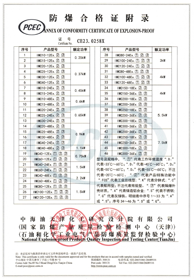 IMC標準技術(shù)參數(shù)表